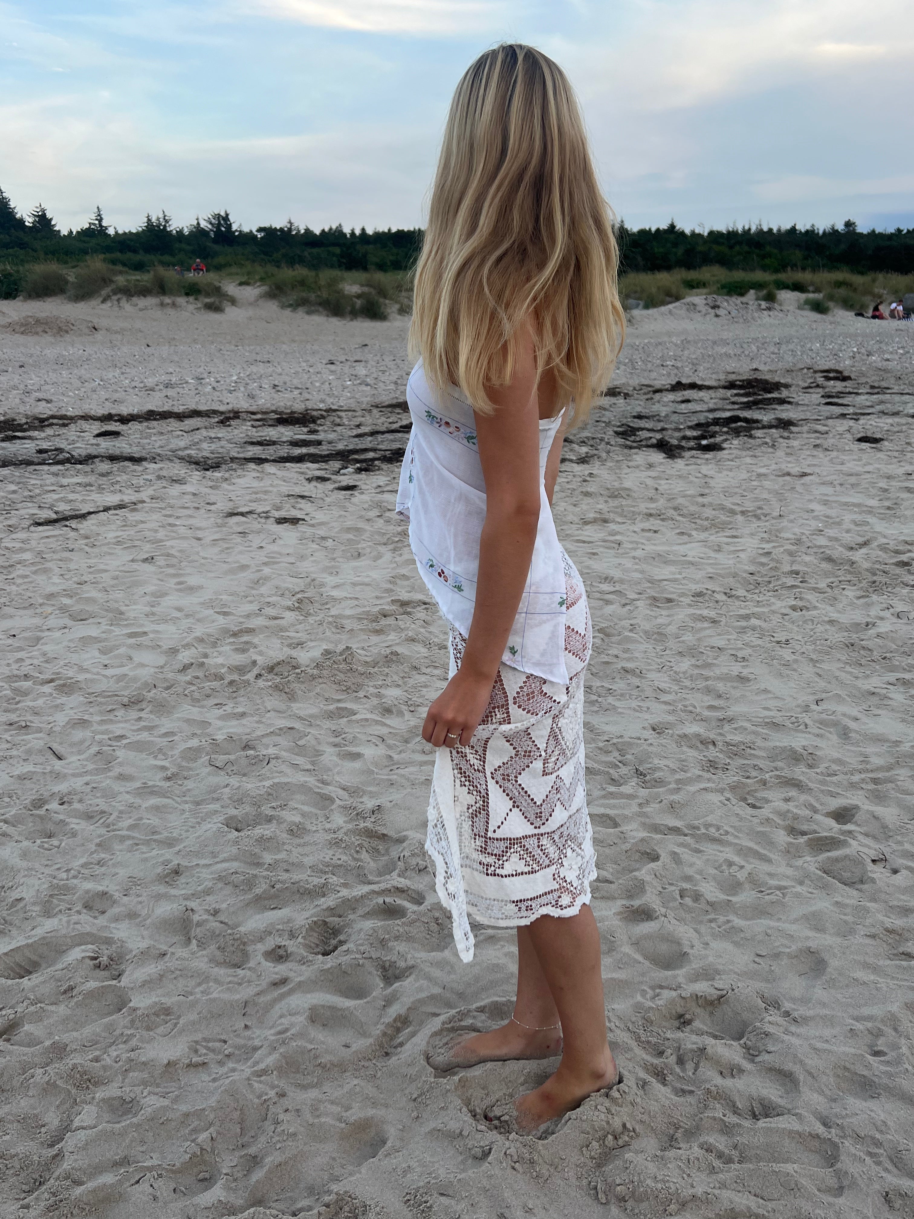 We sewed this dreamy skirt together from various pieces of embroidery we found at flea markets in small towns across Denmark. Each style carries the essence of a bygone era, where the Earth rotated at the same pace, yet time felt slower and the stars clearer.